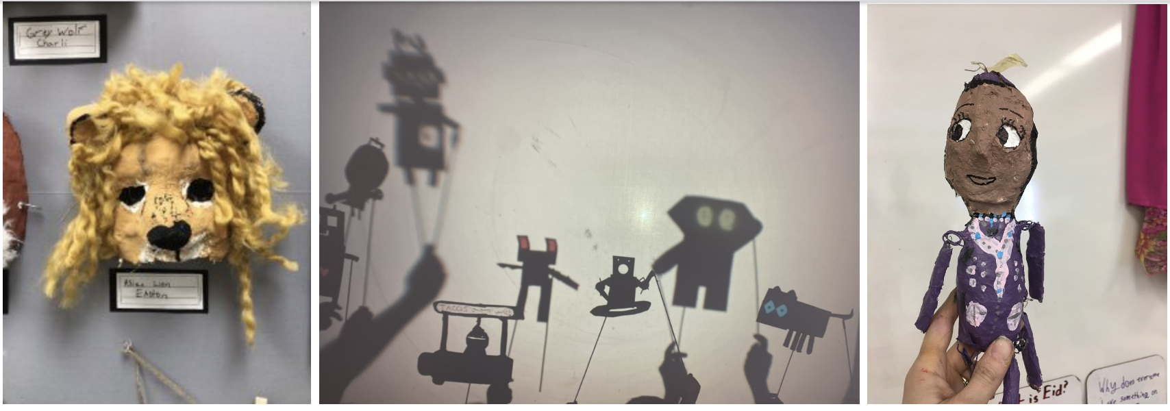 Puppets and masks are a powerful tool for artistic expression. They have the power to restore voice and agency to those who are silenced. They help us address complicated issues and emotions in a way that encourages listening and dialogue, and most importantly, they connect us to our innate ability to play. Puppets and masks can take many forms and have wide curricular connections. Some forms of puppetry include shadow puppets, rod puppets, hand puppets, tabletop puppets, mouth and rod (muppet-style) puppets, and marionettes. Additionally masks can vary in materials and subjects including animals, elements and emotions.