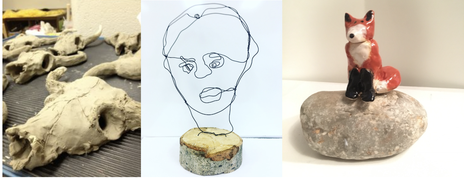 Sculpture is the creation of three-dimensional works of art. Materials used to create sculpture include clay, papier-mache, plaster, plasticine, sculpy, wire, and found objects. Through sculpture students learn the design principles of form, function, balance, and space. Jennifer also teaches pottery through hand building techniques.