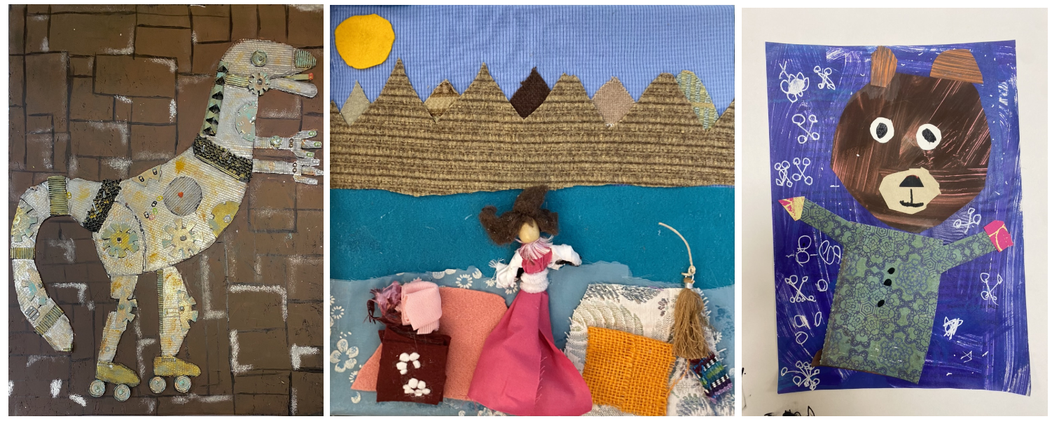 Mixed media refers to the combination of 2 or more art materials in one piece; assemblage is the arrangement of found objects to create a work of art, and Collage is the arrangement of various papers and materials to create an image. The possible materials and subject matter for these art forms are truly limitless. This art form is especially relevant when teaching about waste in the world as it gives students the opportunity to create art by repurposing material that would otherwise be thrown away.