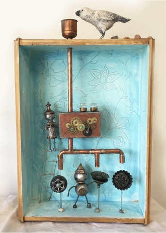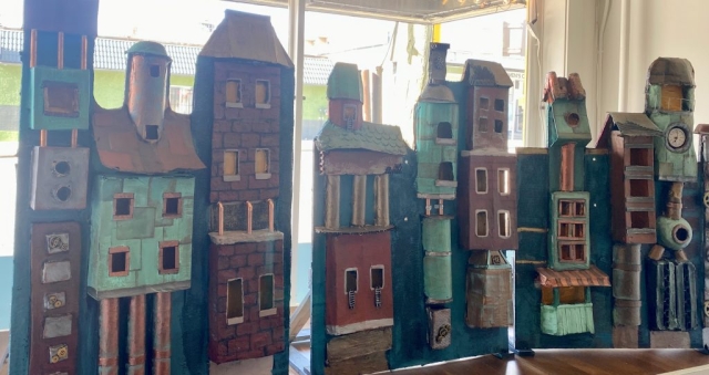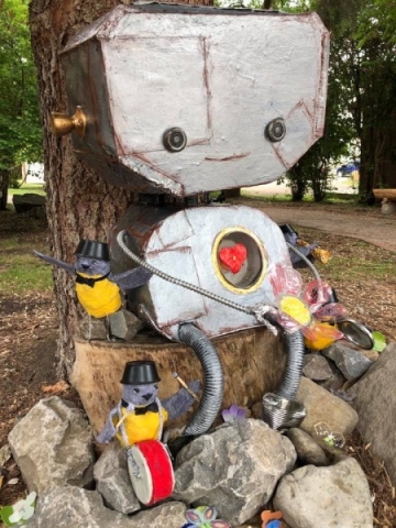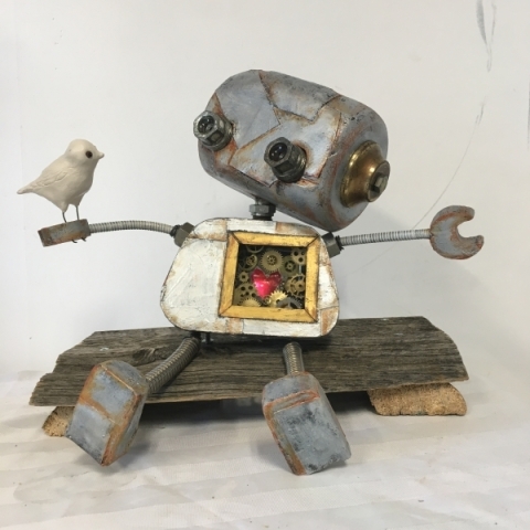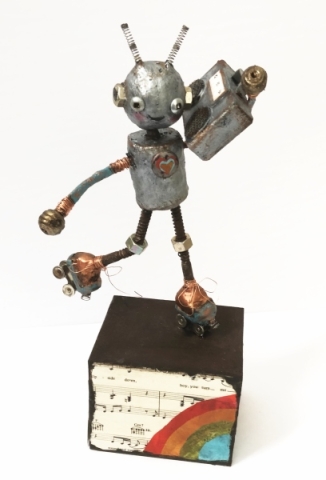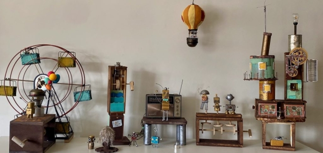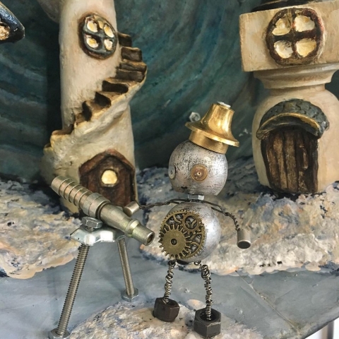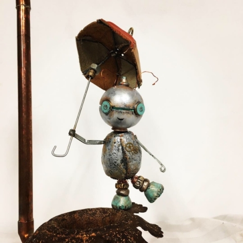 Discover the whimsy and magic of Jenny’s Sculptures and Puppets. Here you’ll find a selection of her whimsical puppets, found object assemblage robots, and her post-consumer material public art sculptures.